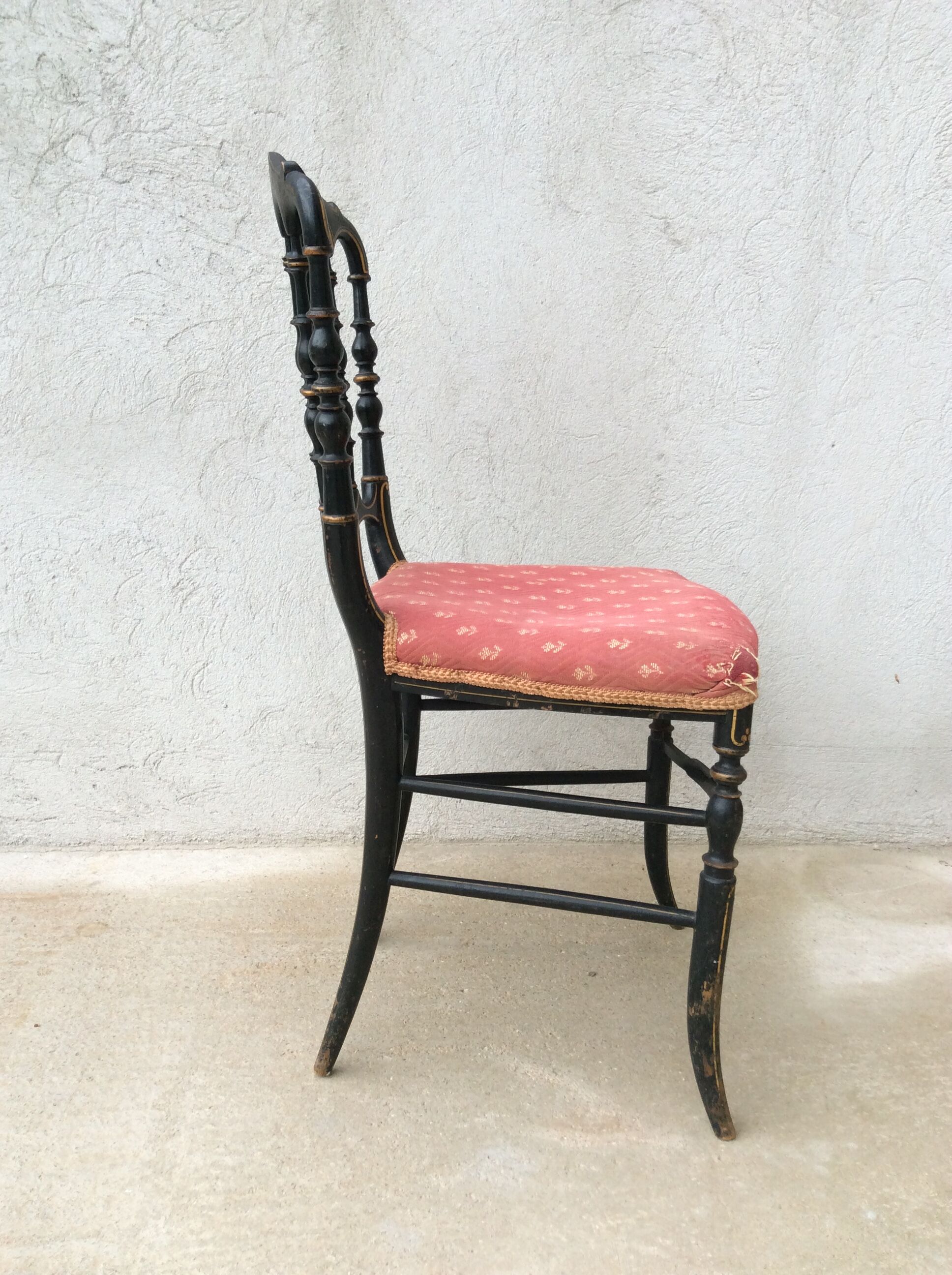 Chaise Napoleon III XIXe bois noirci décor doré Selency